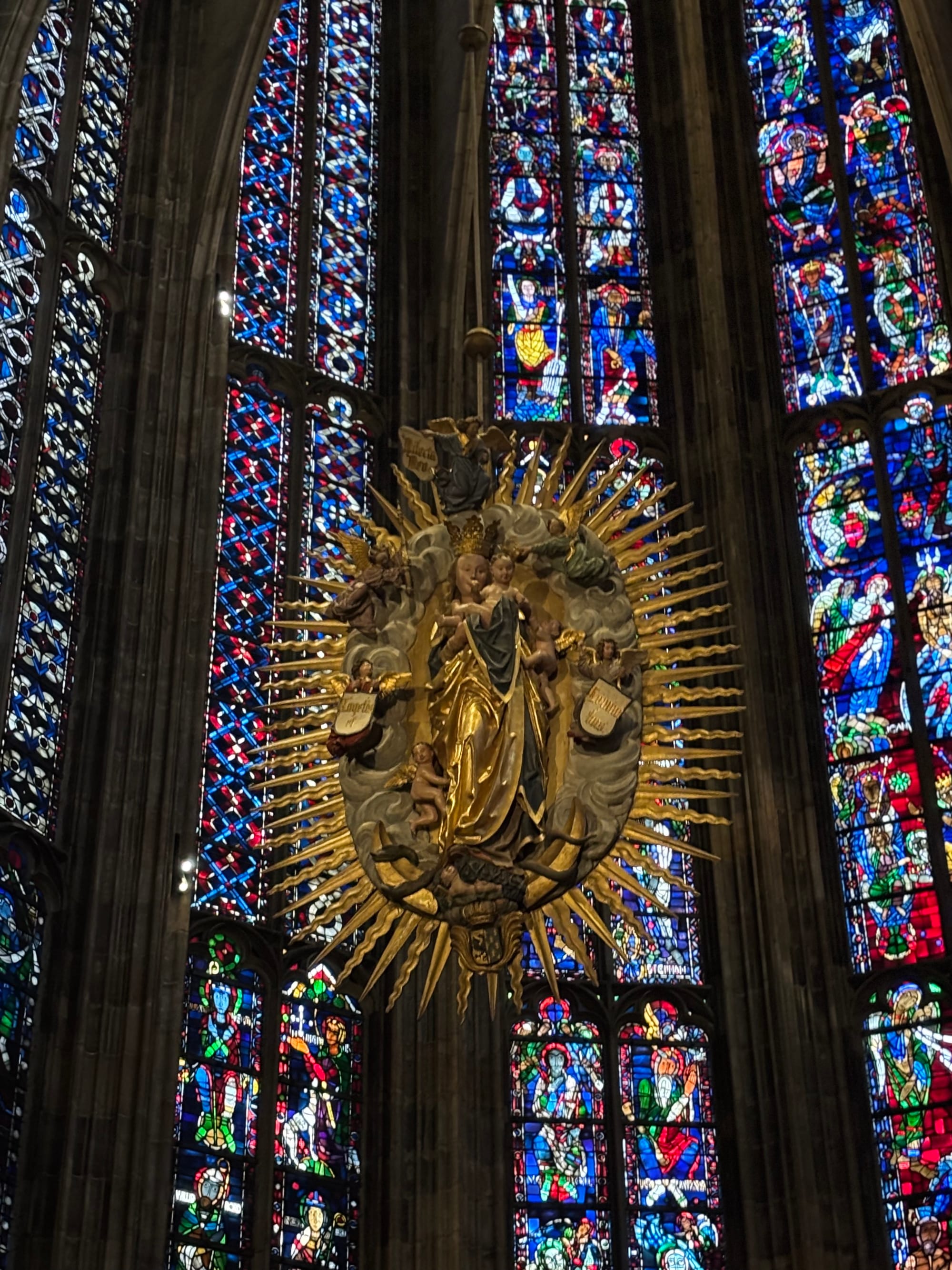 6. A dóm kincstárában található a Marienschrein, egy lenyűgöző ereklyetartó szentély, amelyben többek közt Mária ruhája, Jézus pólyája és János keresztségáldozatai találhatók – ezek a nagy zarándoklatok alkalmával minden hét évben nyilvánosan láthatóak. (Legközelebb 2028-ban – szerk.)