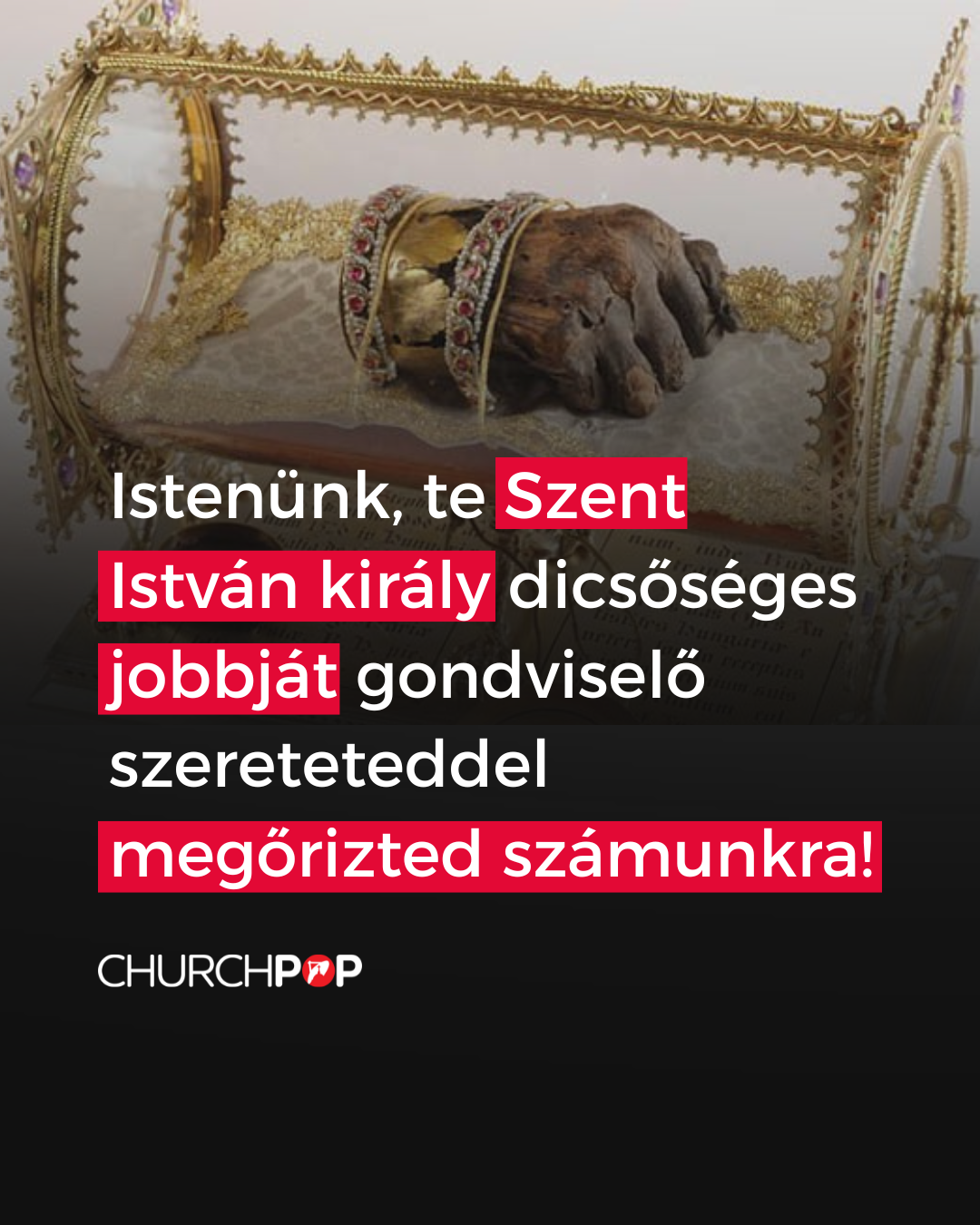 „Istenünk, te Szent István király dicsőséges jobbját gondviselő szereteteddel megőrizted számunkra. Add, hogy oltalmának szüntelenül örvendjünk.”