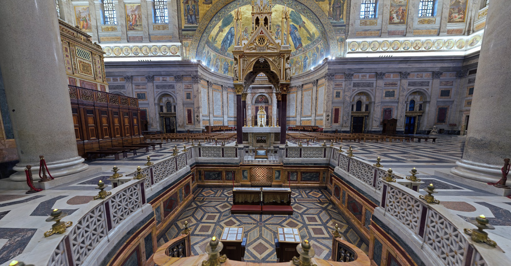 Rómában a Szent Pál-bazilika belső terét tágasnak, lenyűgözőnek és imádságra alkalmasnak találtam. Az arannyal díszített mennyezet és a diadalív Krisztust, Szent Pétert és Pált, valamint egy koronát tartó 24 vénet ábrázol. Az apszis mozaikján Krisztus látható Szent Péterrel, Pállal, Lukáccsal és Andrással, alattuk pedig a többi apostol.