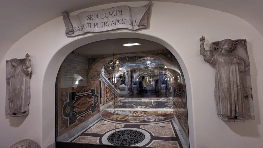 A bazilika legnagyobb kincse azonban az első pápa, Szent Péter, sírja, amely a főoltár alatt található, Bernini csodálatos baldachinja alatt.