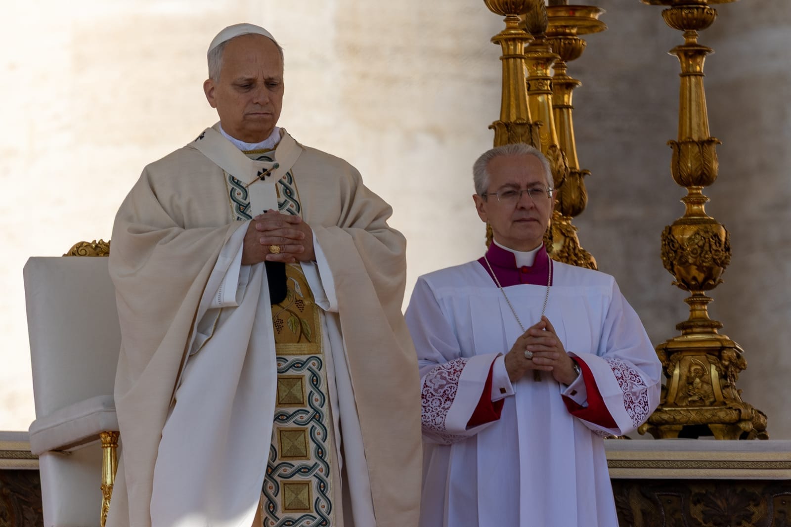 Ekkor Leó pápa krémfehér miseruhát viselt, zöld árnyalatú hímzésekkel, melyet a rosanói nővérek készítettek Szent II. János Pál számára, és melyet XVI. Benedek és Ferenc pápa is használt.