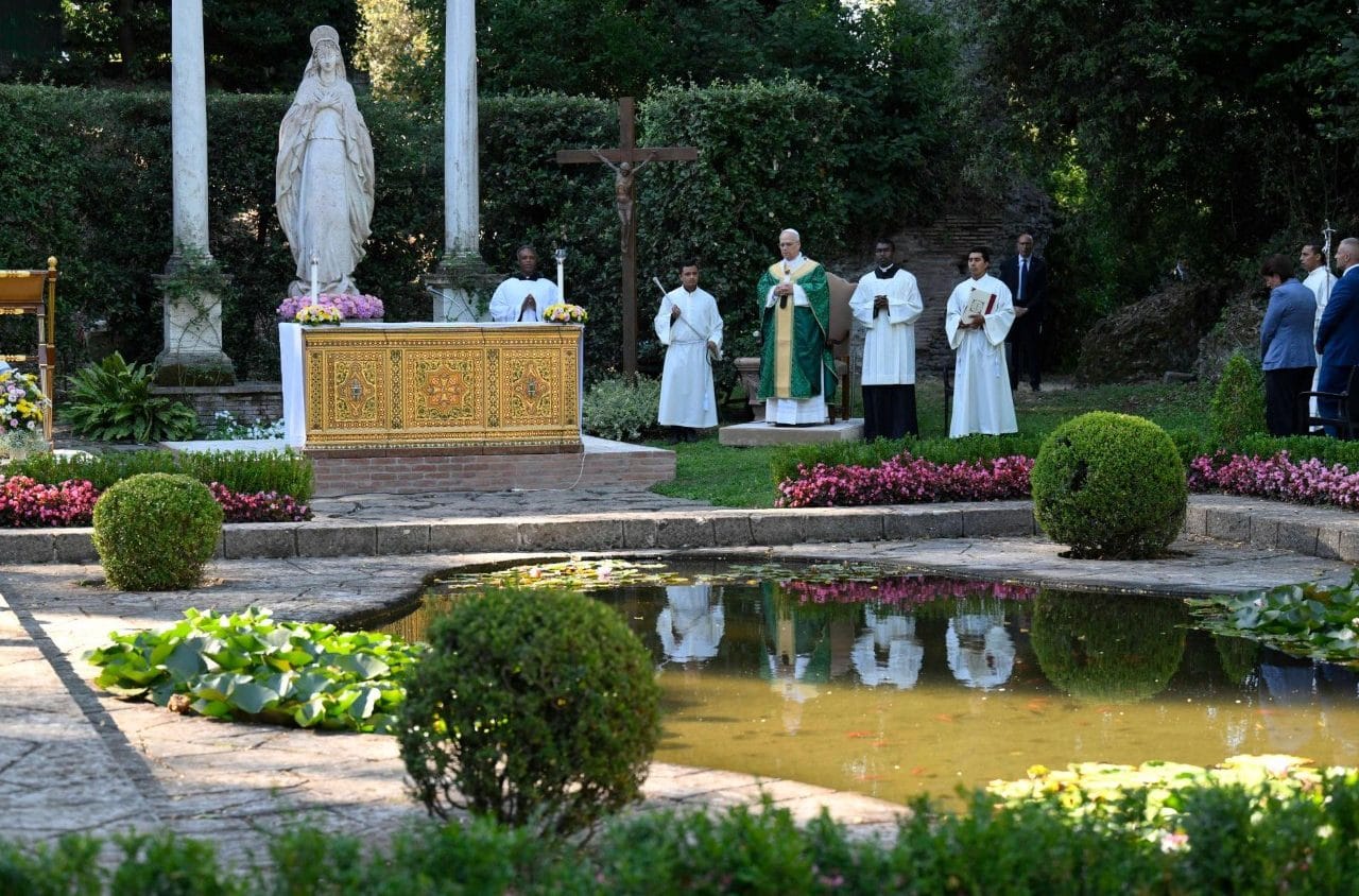 A mostani esemény illeszkedik e hagyományba: a szentmisét a castel gandolfo-i pápai villa 55 hektáros kertjében tartották, melyet még Ferenc pápa nyitott meg a látogatók előtt, és melyet egy ökológiai intézetté alakítottak át Borgo Laudato si’ néven.